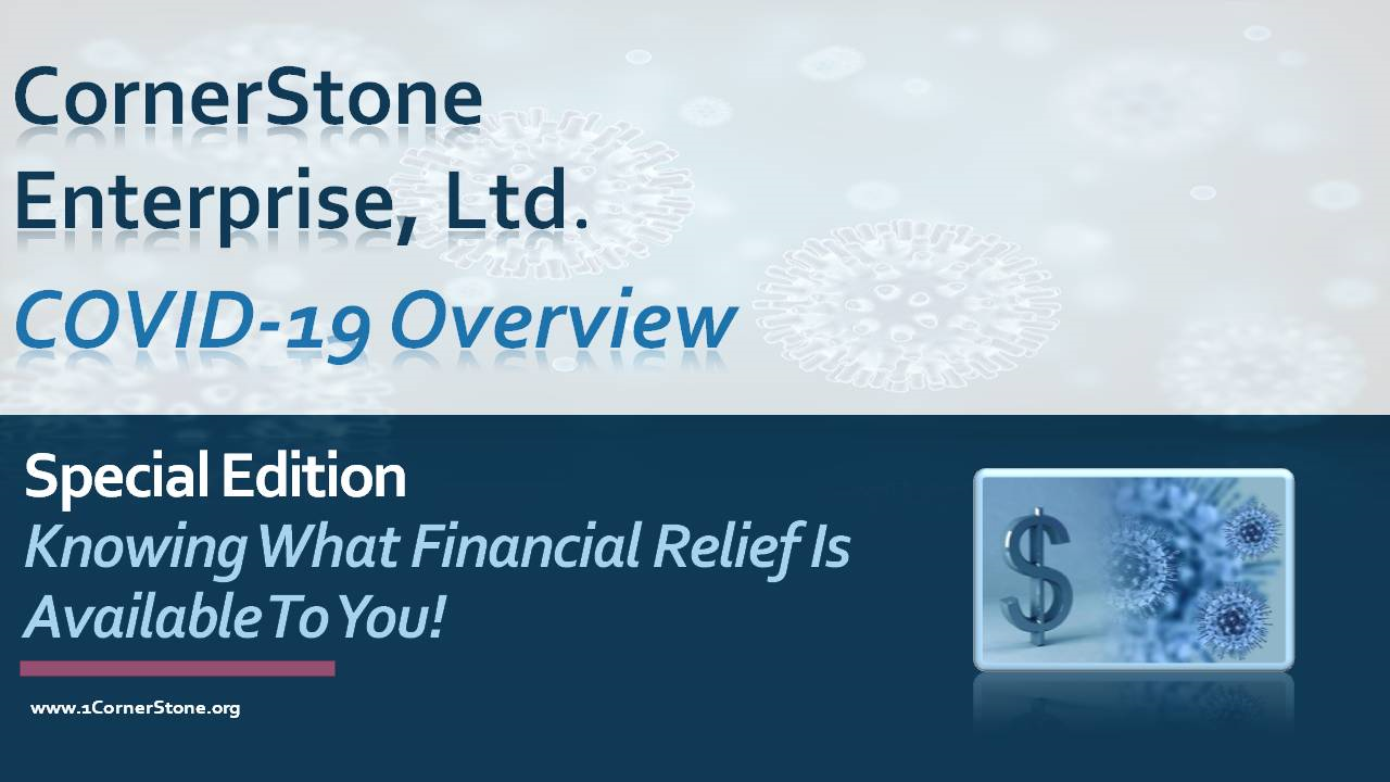 CornerStone Enterprise, Ltd. is offering free one-hour seminars highlighting what financial relief is available to you. Also, the seminars will identify how to access the available resources that can help you obtain the financial assistance needed during this unprecedented time.