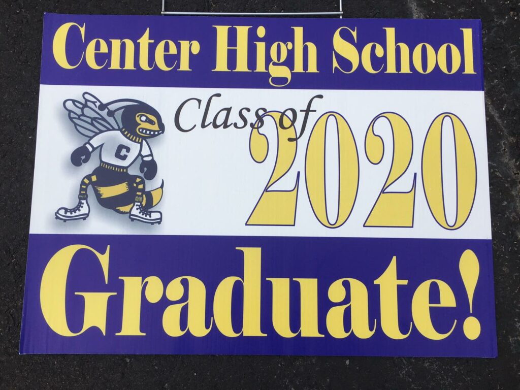In the Center School District, community partners from Center High School and Center Alternative School assisted school staff in the delivery of congratulatory signs to all seniors of both schools. “They didn’t really have to do this. They could’ve just planned something else. But knowing that they did this … It means a lot,” said one senior. “All my hard work paid off and I can do amazing things now.”