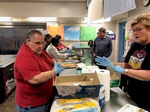 A visit with Santa and delicious pancakes and sausages made for a fun family event hosted by Belvidere Elementary’s community partners and staff. Partners donated sausage links while teachers brought in pancake mix and then the partners prepared and served the breakfast. Partners also contributed large donation baskets that were raffled to families.