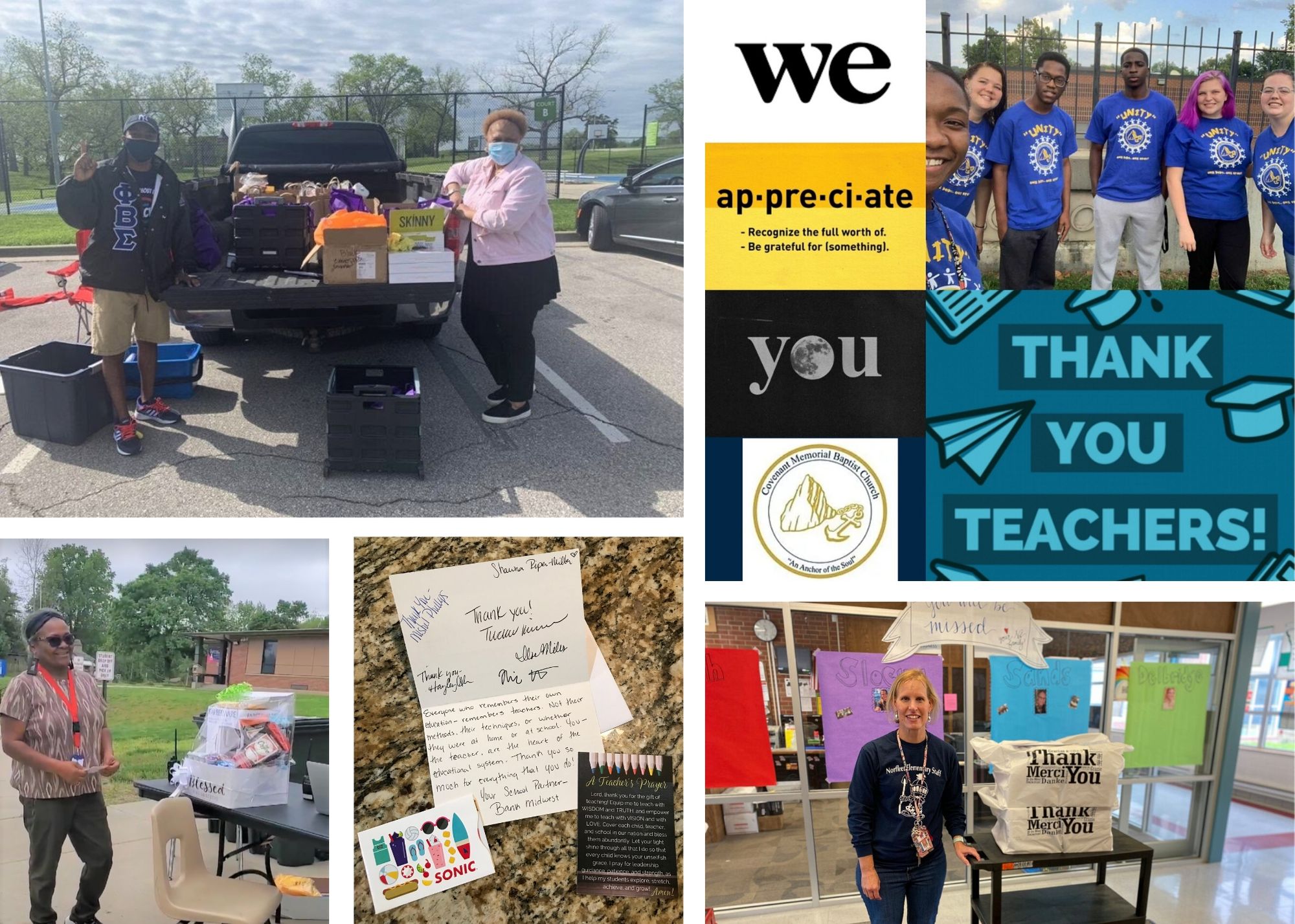 Many Caring for Kids partners throughout all seven districts showed their gratitude to teachers and staff through notes of encouragement and thanks at the end of the school year. In Hickman Mills, Truman administrators, PTA, and community partners mailed cards/letters to the homes of all the staff. Every staff person received at least one card/letter along with a gift card during and many of them received multiple cards/letters throughout the week.