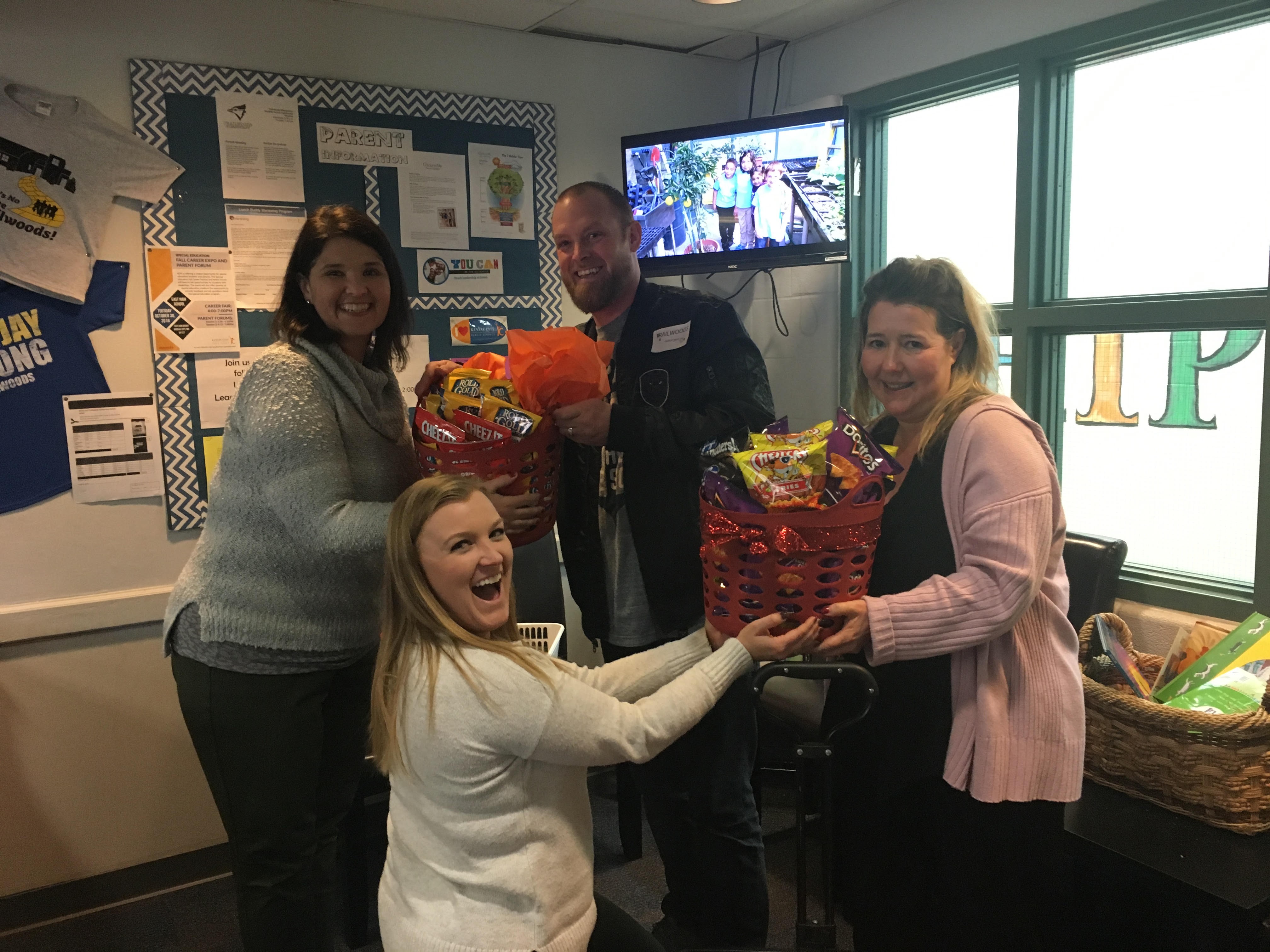 The principal and staff at Trailwoods Elementary, Kansas City Public Schools, were excited to receive snacks and gifts from one of their school partners, Reach KC Church.